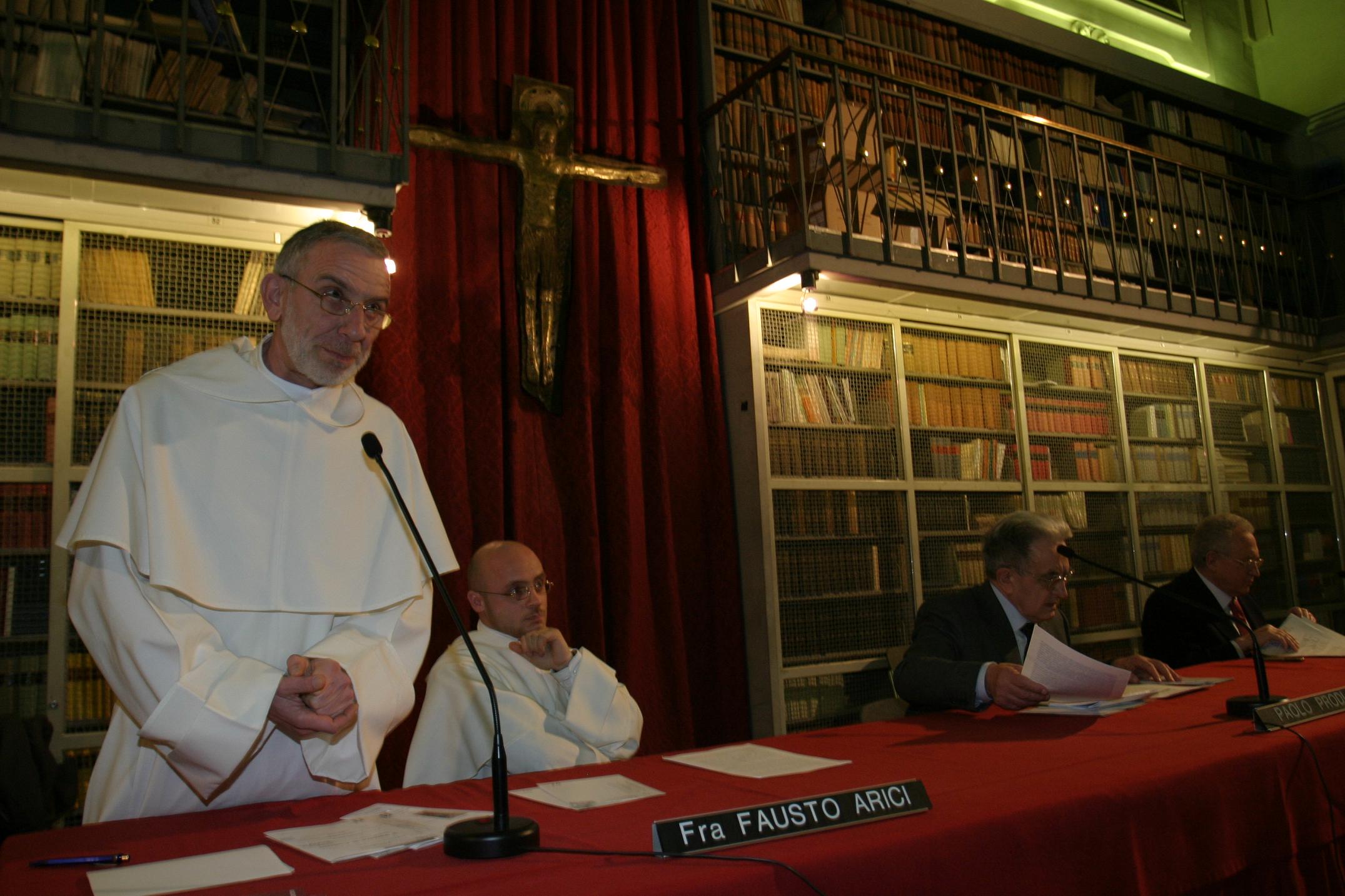 Paolo Prodi, che insegna Storia Moderna a Bologna, ricorda innanzitutto che la "costituzione" non è una realtà fissa, immobile, a-storica, bensì uno strumento giuridico-politico nato in ambito statale (dal '700 in avanti) e dunque con ogni probabilità inadeguato a una federazione, com'è oggi l'Europa. D'altronde l'Europa liberale e democratica con cui oggi tendiamo a identificarci non nasce solo nel '700 ma dal distacco tra sfera del sacro e sfera del politico: le radici cristiane consistono appunto nel dualismo Dio/Cesare, che si sostanzia, nel corso del Medio Evo, in istituzioni diversificate. C'è poi la questione del giuramento, ovvero del passaggio da un'autorità superiore a una garanzia che viene invece dal basso: le con-iurationes dei cittadini (formazione dei Comuni) che si sviluppano nei secoli fino all'idea di Nazione, a cui ci si "consacra" (obbligo di morire per la patria = battesimo laico). Oggi è in atto una crisi degli Stati-Nazione analoga a quella dei Comuni nel '400, entrambe determinate dall'allargamento del mercato. La faticosa ratifica dell'UE a 25 Stati conferma come un patto politico sia solo abbozzato, tutto da progettare: la sfida è quella di non muoversi in direzione di un federalismo vecchio stampo e di pensare invece un nuovo organismo, sempre tenendo presente che sarebbe pericoloso per la democrazia rinunciare al dualismo sacro/politico.